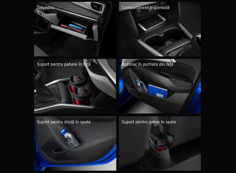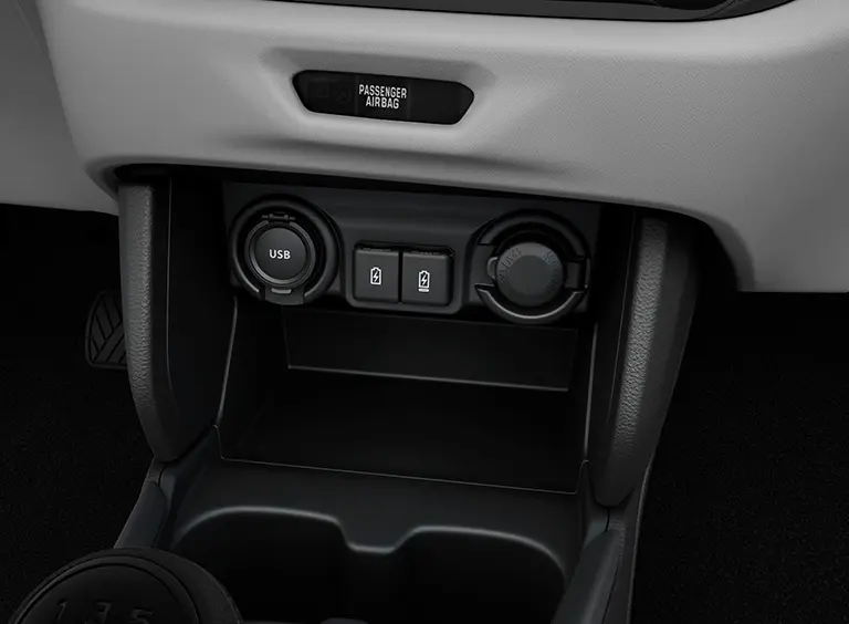 Toate echipările includ o priză pentru accesorii DC 12V și o mufă USB pentru conectivitatea dispozitivelor.