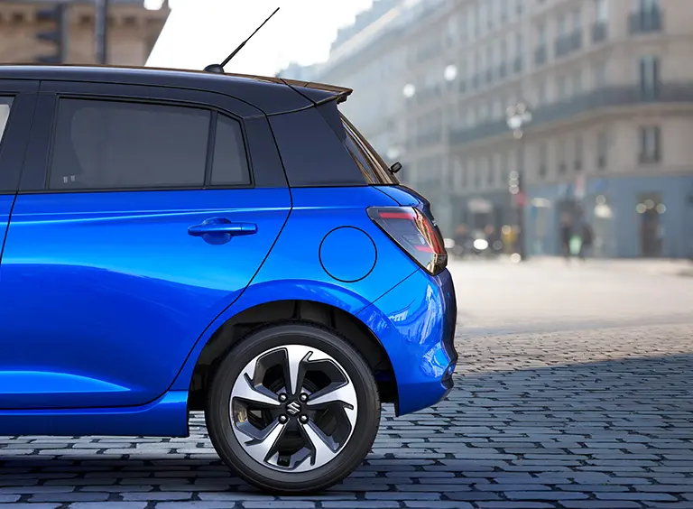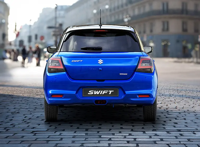 Noul Swift se remarcă prin stilul său rafinat, de la liniile suple și elegante ale caroseriei în două culori, până la bara de protecție lată din spate, are un aspect sportiv și atletic, ce reflectă manevrabilitatea promptă și agilitatea vehiculului.